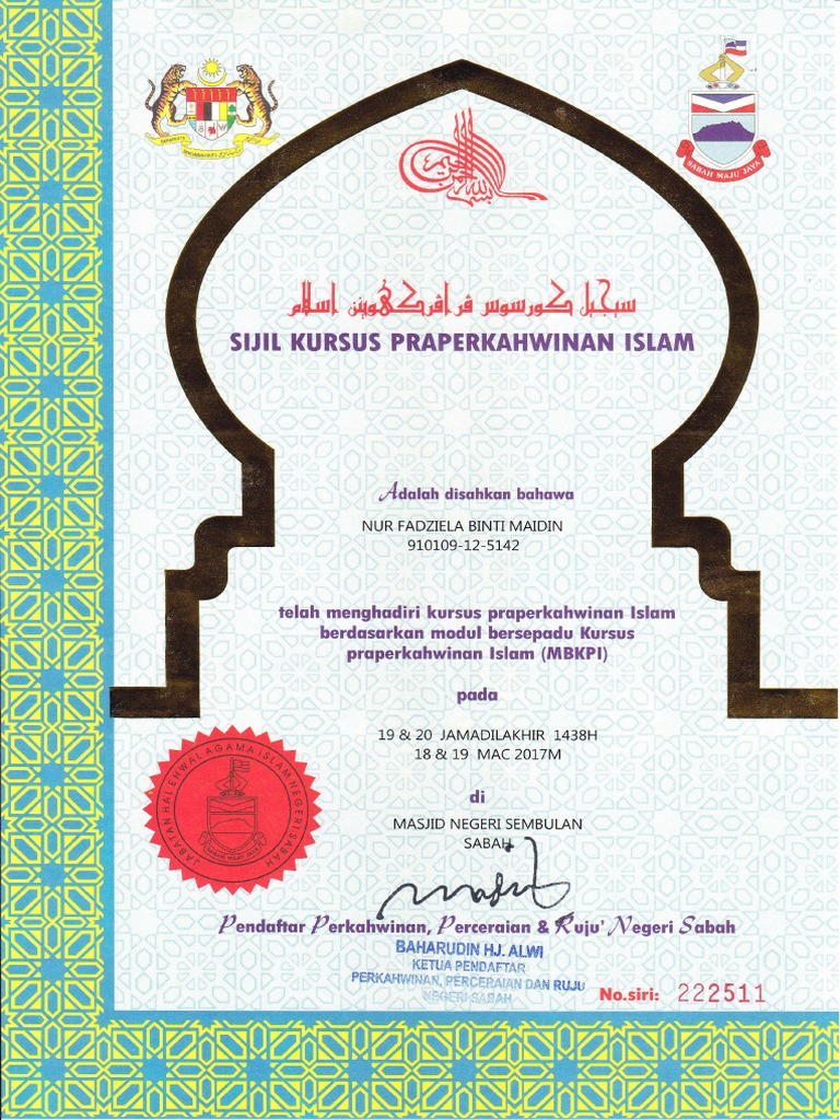Related : Jadual Kursus Kahwin Sabah 2017 - Sijil kursus pra perkahwinan boleh siap dalam jangka masa 3 hari selepas tarikh kursus (hari bekerja)..