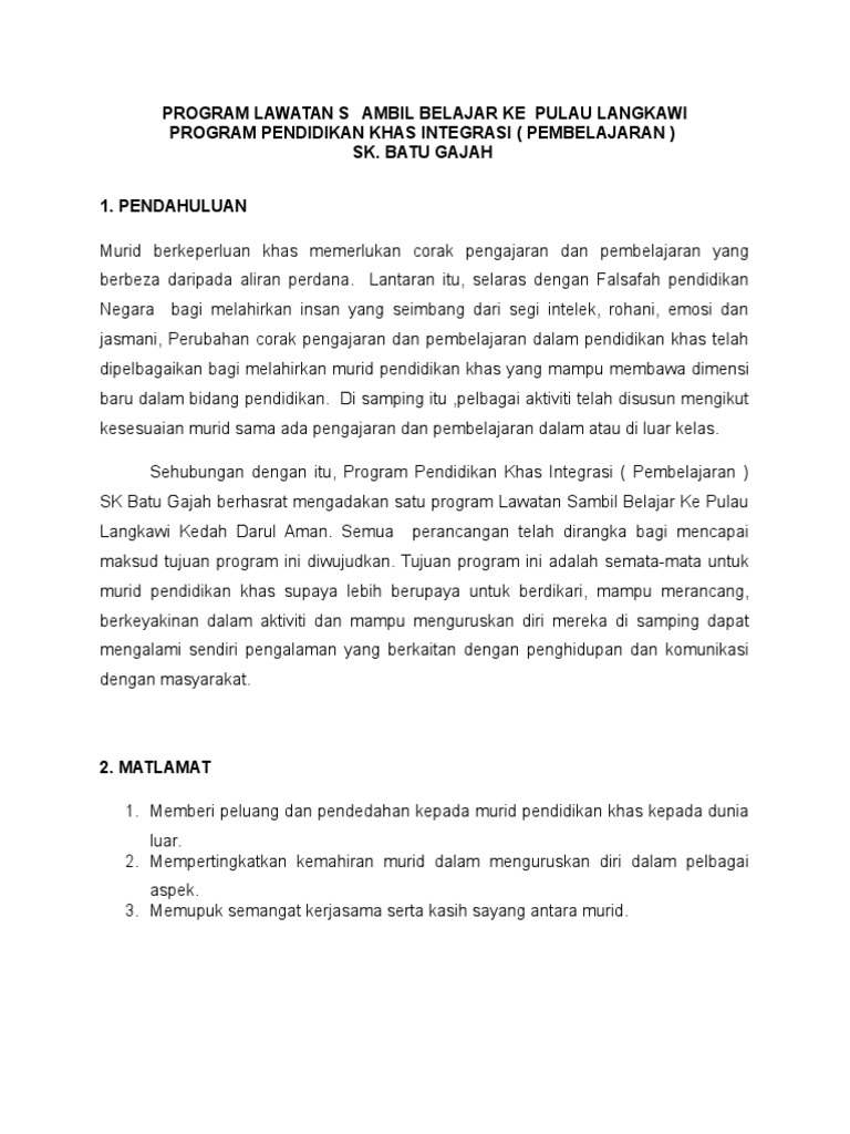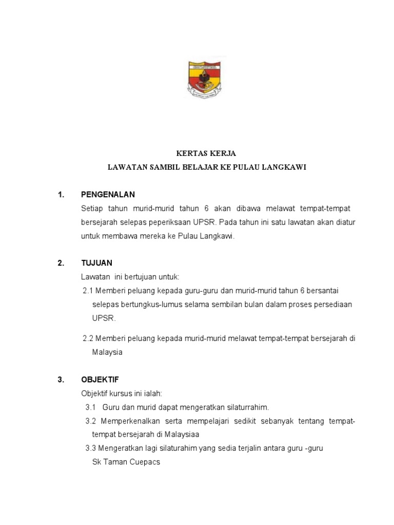 Kertas Kerja Lawatan Ke Langkawi / Kertas kerja lawatan sambil belajar ke pwtc, kuala lumpur 2011 3 o sebagai salah satu wadah pendorong ke arah kejayaan dalam pelajaran.