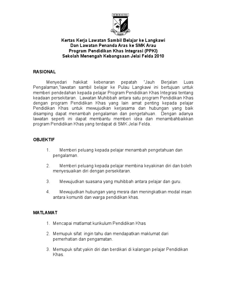 Kertas kerja lawatan sambil belajar ke pwtc, kuala lumpur 2011 3 o sebagai salah satu wadah pendorong ke arah kejayaan dalam pelajaran. Use the download button below or simple online reader. Timbalan ketua polis daerah brickfields, superintendan basri sagoni berkata. Kertas kerja kokurikulum kertas kerja program kertas kerja sukan. Kolej matrikulasi teknikal kedah kertas kerja lawatan sambil belajar ke pulau pinang anjuran :
